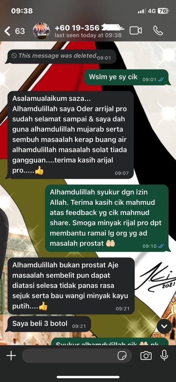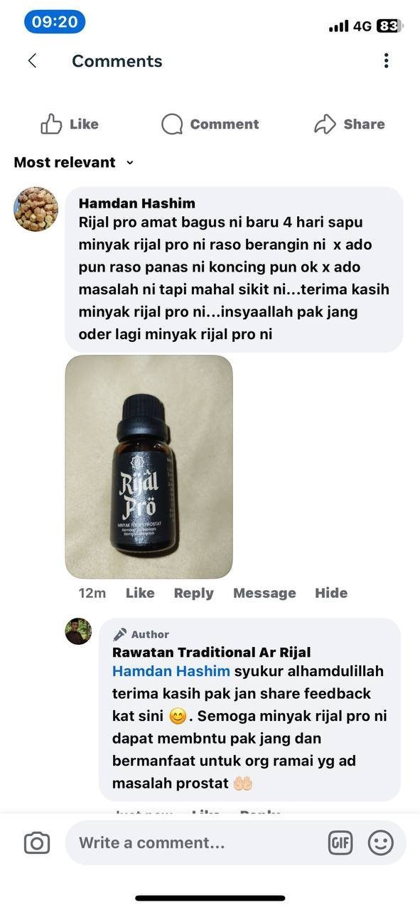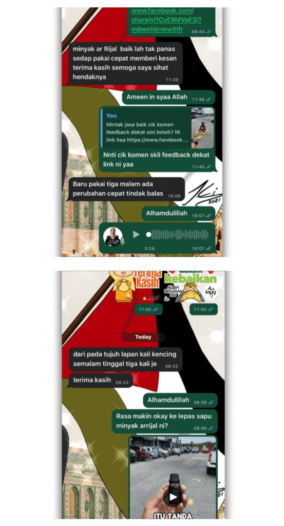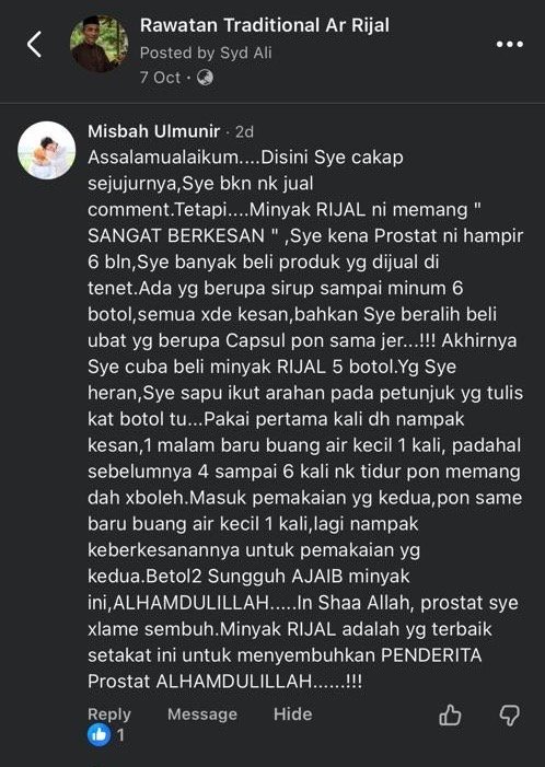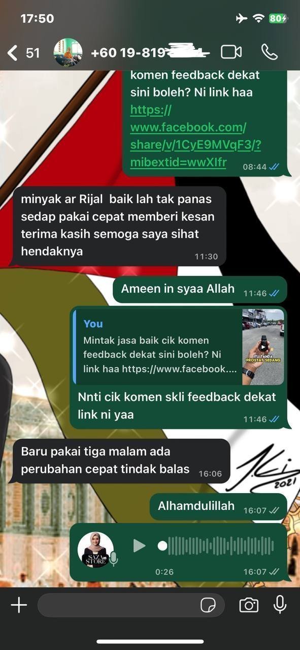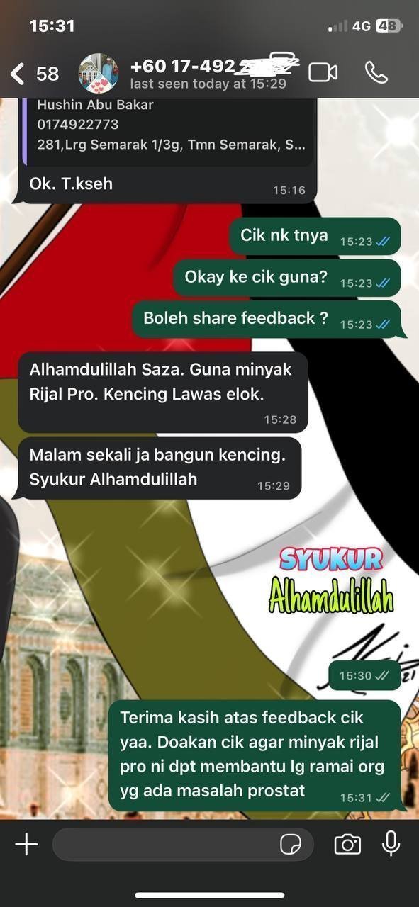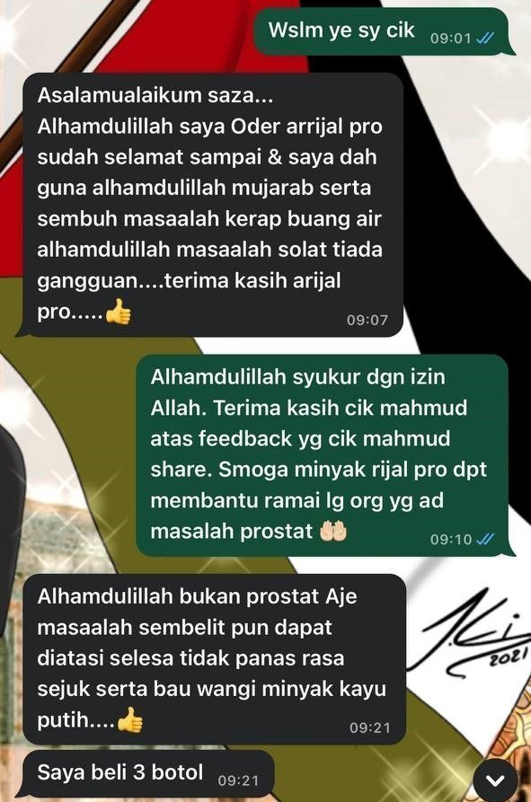 Minyak Herba Rijal Pro hanya untuk kegunaan luaran sahaja.